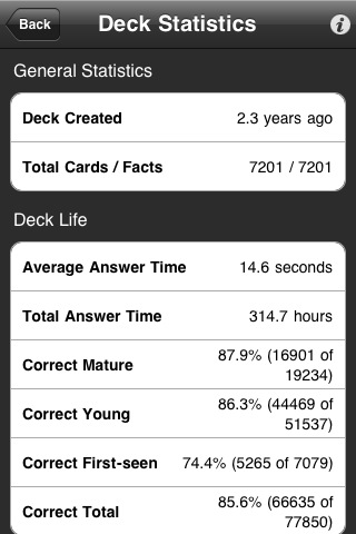| AnkiMobile Flashcards - программа рассчитана на серьезных пользователей. Anki предлагает ряд функций которых не хватает в других подобных программах. Алгоритм повторения автоматически настраивается по результатам ваших ответов. Программа позволяет синхронизировать каталоги карточек на iPhone и персональном компьютере. Программа накапливает статистику обучения. Программа использует гибкий формат отображения карт, что позволяет отображать произвольное количество полей на передней и задней части карты. [Скриншот] Курсы английского